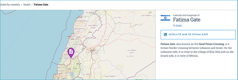 Before going further, its important to note that even though the “Fatima Gate” is located on the Israeli side of the Lebanon-Israeli Border within walking distance of Metulla – at one time both Metulla and the “Fatima Gate” were located on Lebanon’s side of the border. More to the point: Hezbollah and the Lebanese Authorities believe that the “Fatima Gate” and Metulla, Israel where the “Fatima Gate” is now located both belong to Lebanon and that the Israelis living in Metulla are on Lebonese soil.