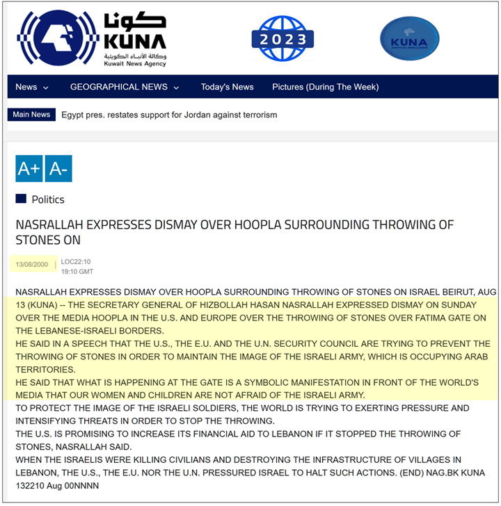 Nasrallah’s Religious Goal was to Restore the Honor of Fatima and her Namesake – the “Fatima Gate” named in honor of his Foremother – by taking the “Fatima Gate” back away from Israel. Nasrallah, as well as the Lebanese, believe that both the “Fatima Gate” and Metulla belong to Lebanon and the Lebanese people along with Hezbollah wanted the “Fatima Gate” and Metulla back even if it meant to go to war with Israel. By taking the “Fatima Gate” back away from Israel, Nasrallah could restore the honor of both Fatima and her Namesake – the “Fatima Gate” that was named in honor of his Foremother Fatima.