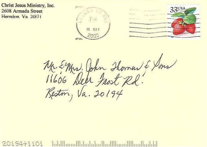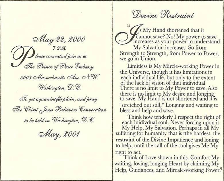I will begin with the envelope and invitation from “Christ Jesus Ministry” who invited me to attend a Convocation that Pastor Schofield was allowing them to host that evening of May 22, 2000 at the Iranian Embassy. Note that the postmark on the invitation’s envelope was May 15, 2000 – Eight Days Before Israeli’s Prime Minister made the decision to begin the withdrawal on May 22, 2000 instead of the scheduled July 7, 2000 withdrawal.