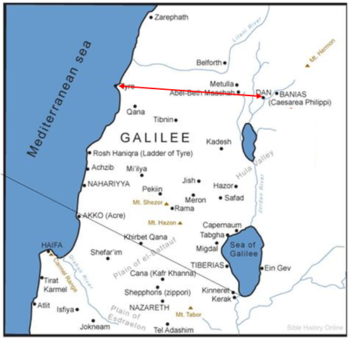 Historians cannot agree on what route Christ took when He crossed over into the regions of Tyre and Sidon. However, Isaiah’s prophecy in Isaiah 9:1-2 gives us a very good idea of where the border was that Christ crossed over into the regions of Tyre and Sidon.