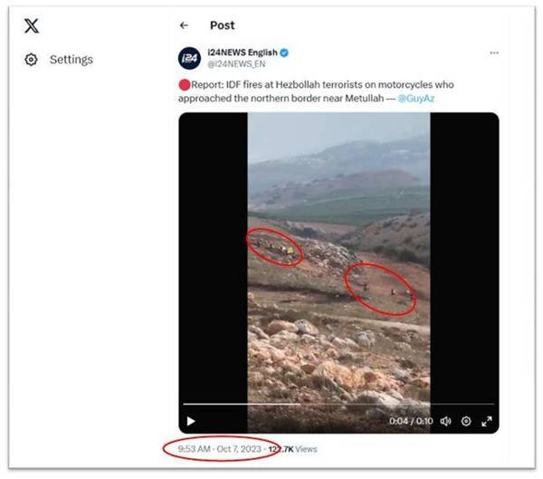 According to a news article and video https://twitter.com/i/status/1710654684644389322 originally posted by “i24NEWS English” then later that same day posted by “The Jerusalem Post on October 7, 2023, quite a large convoy of “Hezbollah terrorists on motorcycles tried to breach Metulla’s borders on October 7, 2023 at 9:53 AM while I was still in Metulla. The article went on to say that IDF soldiers retaliated by firing on the Hezbollah terrorists thus thwarting their efforts to breach Israel’s north near the village of Metulla. The Jerusalem Post confirmed that the incident comes amidst Hamas rockets and attacks on Israel from the Gaza Strip.