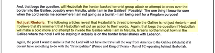 The significance of Metulla is this is where the Fatima Gate is located. And, it was here at the Fatima Gate, a gateway of the enemy that God told Abraham his seed would stand in, that Hezbollah drew their “Front Line” of attack threatening to cross over the border and invade Metulla and the entire Galilee.